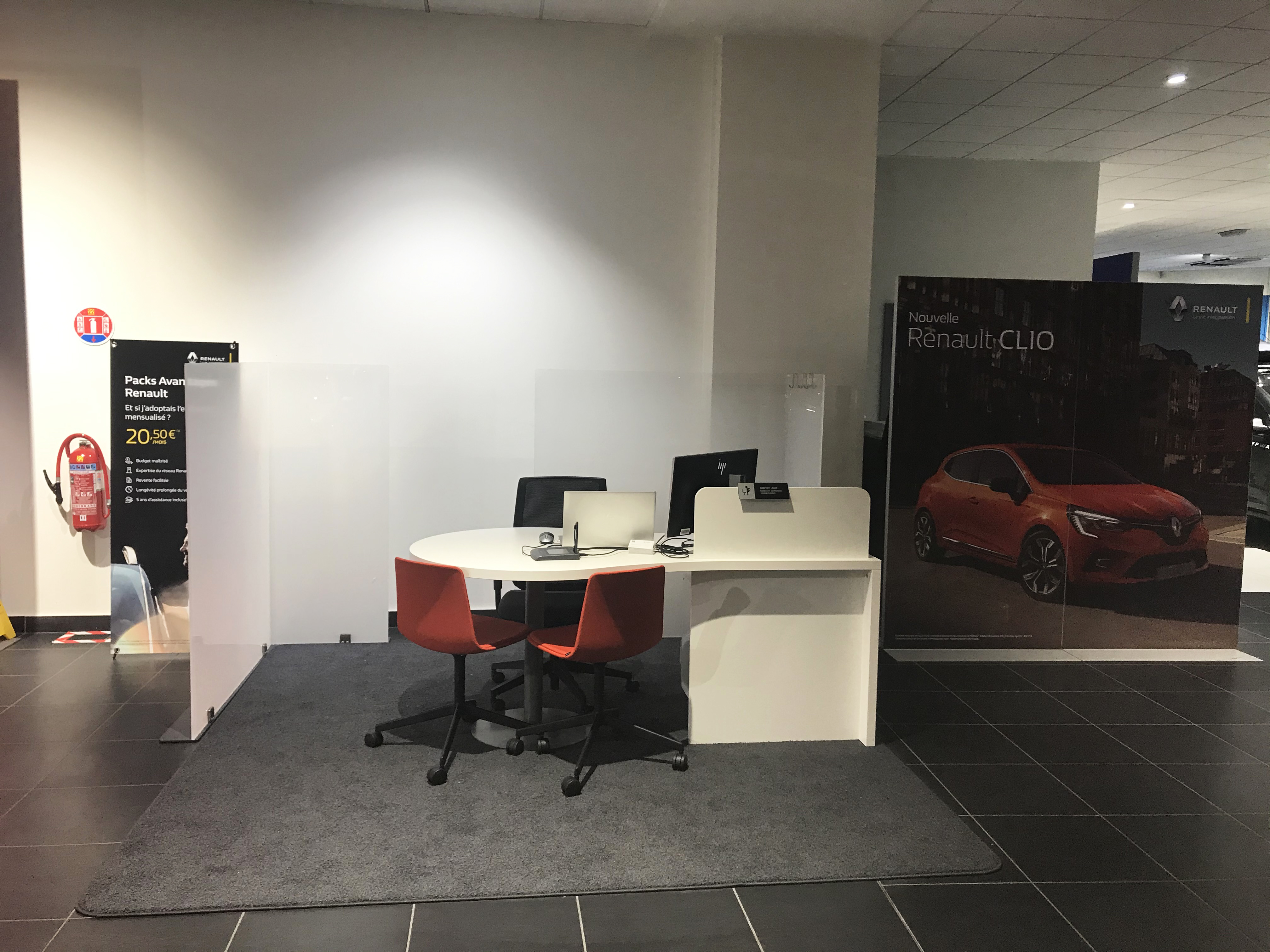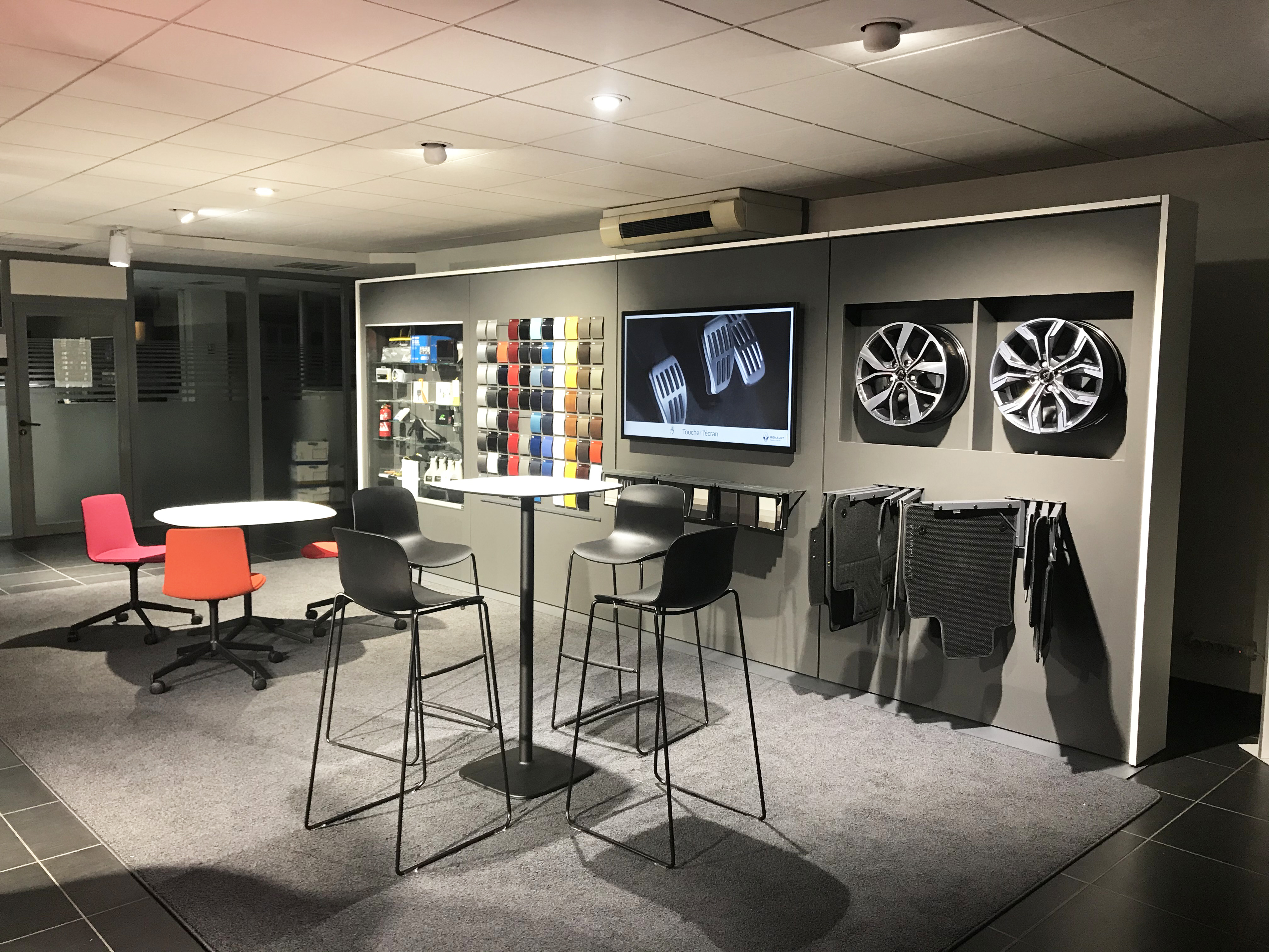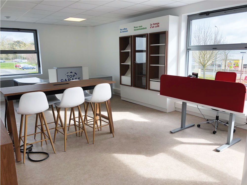 Depuis le showroom, l’Espace Après-Vente est visible grâce à la transparence de la paroi.