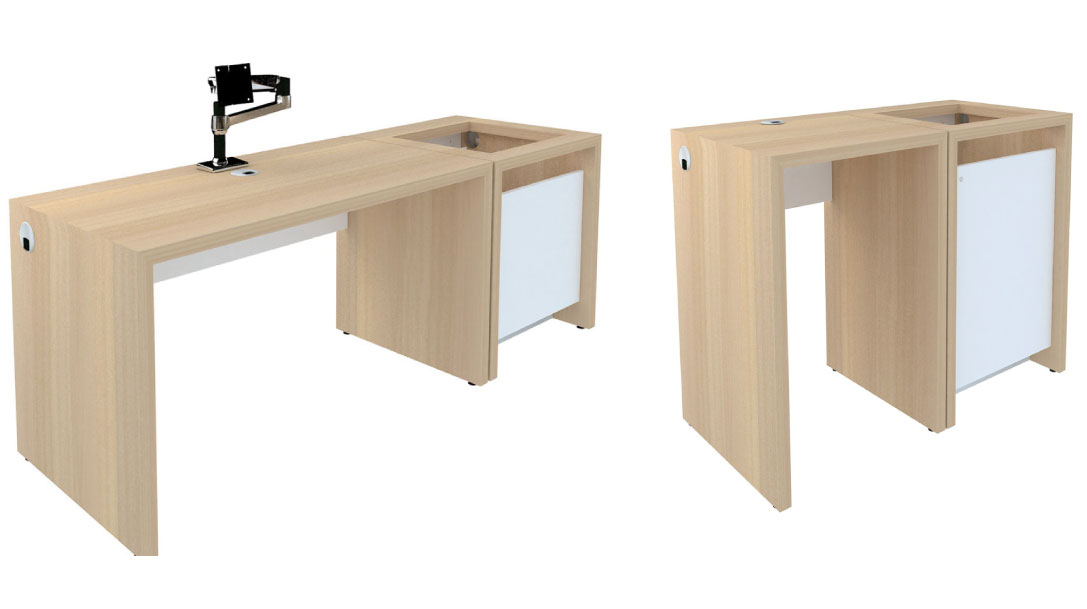 Ce sont les capacités industrielles des ATELIERS DE CHEVREUSE à produire de façon automatisée des mobiliers aux finitions techniques exigeantes qui ont séduit la CNAMTS. Le mobilier est conçu à la fois en Hêtre Lamellé Collé et en Stratifié.